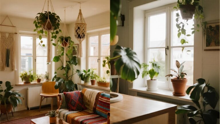 - Add Boho Accents: Introduce macramé hangers, a few statement plants, and textured rugs or cushions.